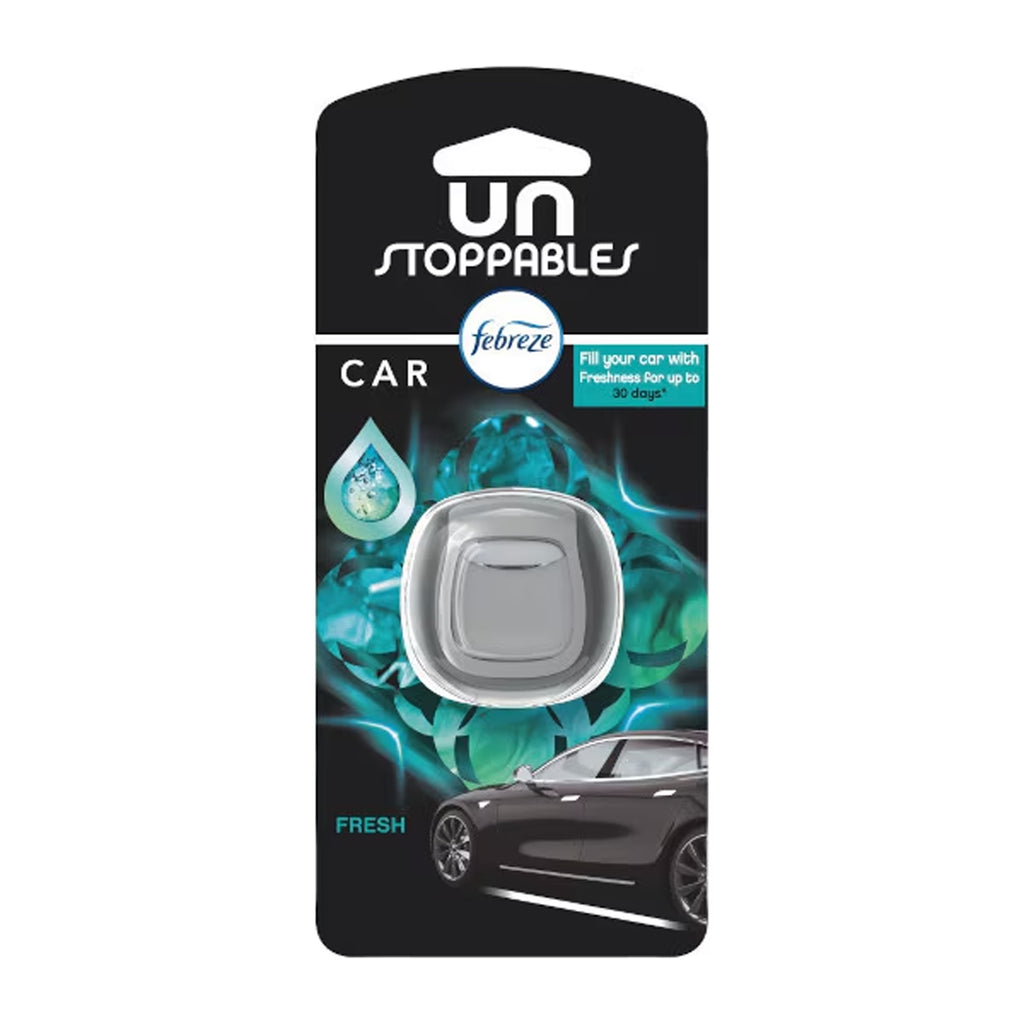 Febreze Unstoppables Car Air Freshener vent clip continuously eliminates odors an for freshness you keep noticing. Lasts up to 30 days. Discover the bold freshness of your Unstoppables Fresh to fill in your car. Fresh fragrance is inspired by the ocean spray, invigorated with zesty green citrus fruits, and has creamy sweet bottom notes.